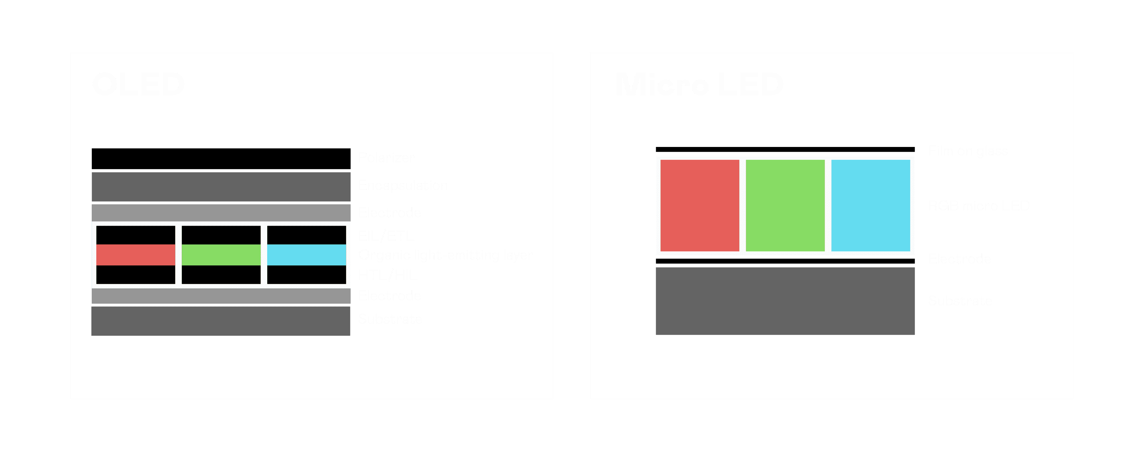 以 LED 做为显示画素,,可让 LED 的发光效率发挥到极致,,从而让显示器具备优异的亮度表现,,不论是在户外或室内,,,均具备出众的显示效果。。。。同时,,与使用有机材料的 OLED 相比,,,,LED 具备更稳定、、、寿命更长的特性,,,,不仅不会有画面烙印问题,,,,而且更不容易出现故障、、坏点。。